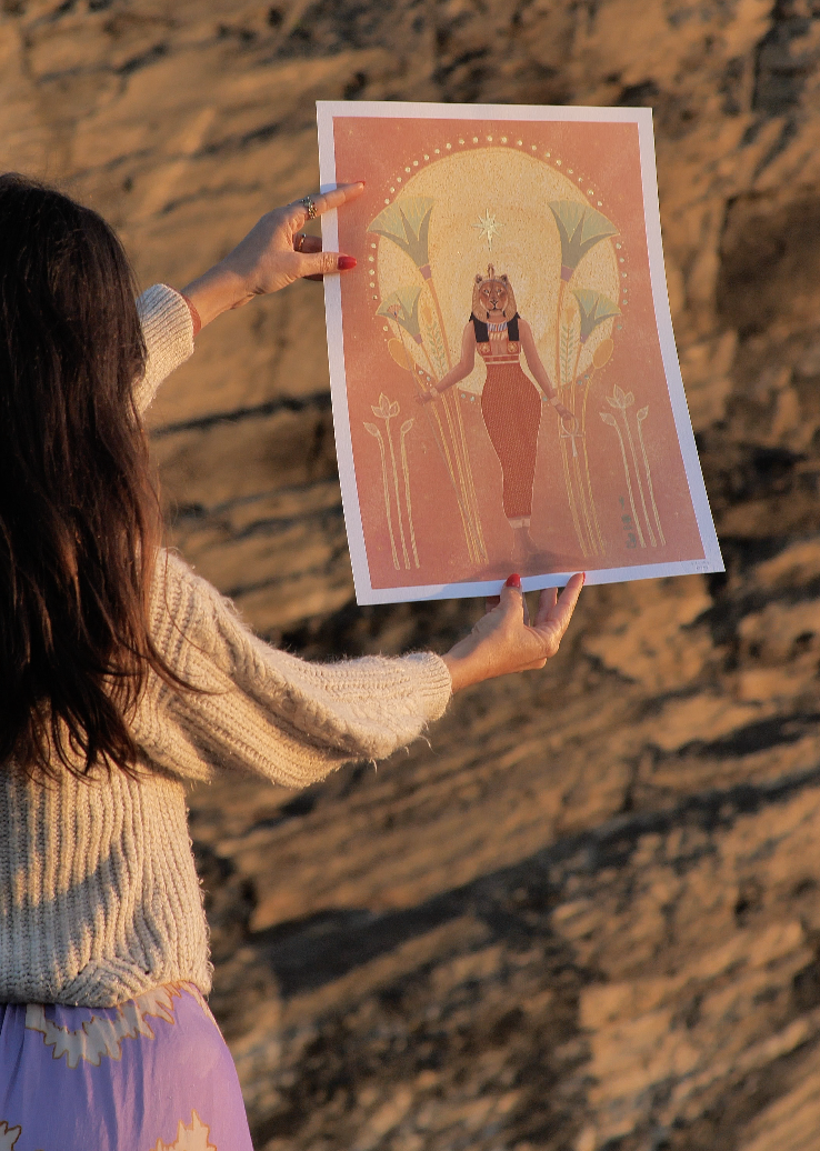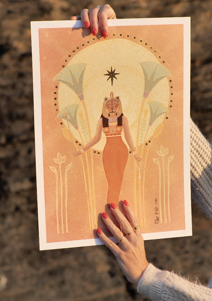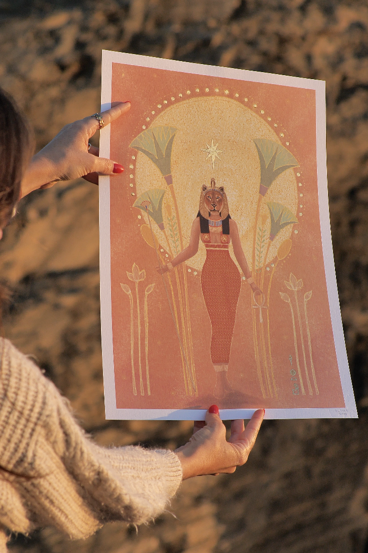 Vê além das ilusões e dos véus, e dissolve todos os medos. Sekhmet recorda-nos que somos força, mas também suavidade. Que a verdadeira coragem nasce da autenticidade. E que dentro de nós temos uma luz capaz de iluminar qualquer caminho.